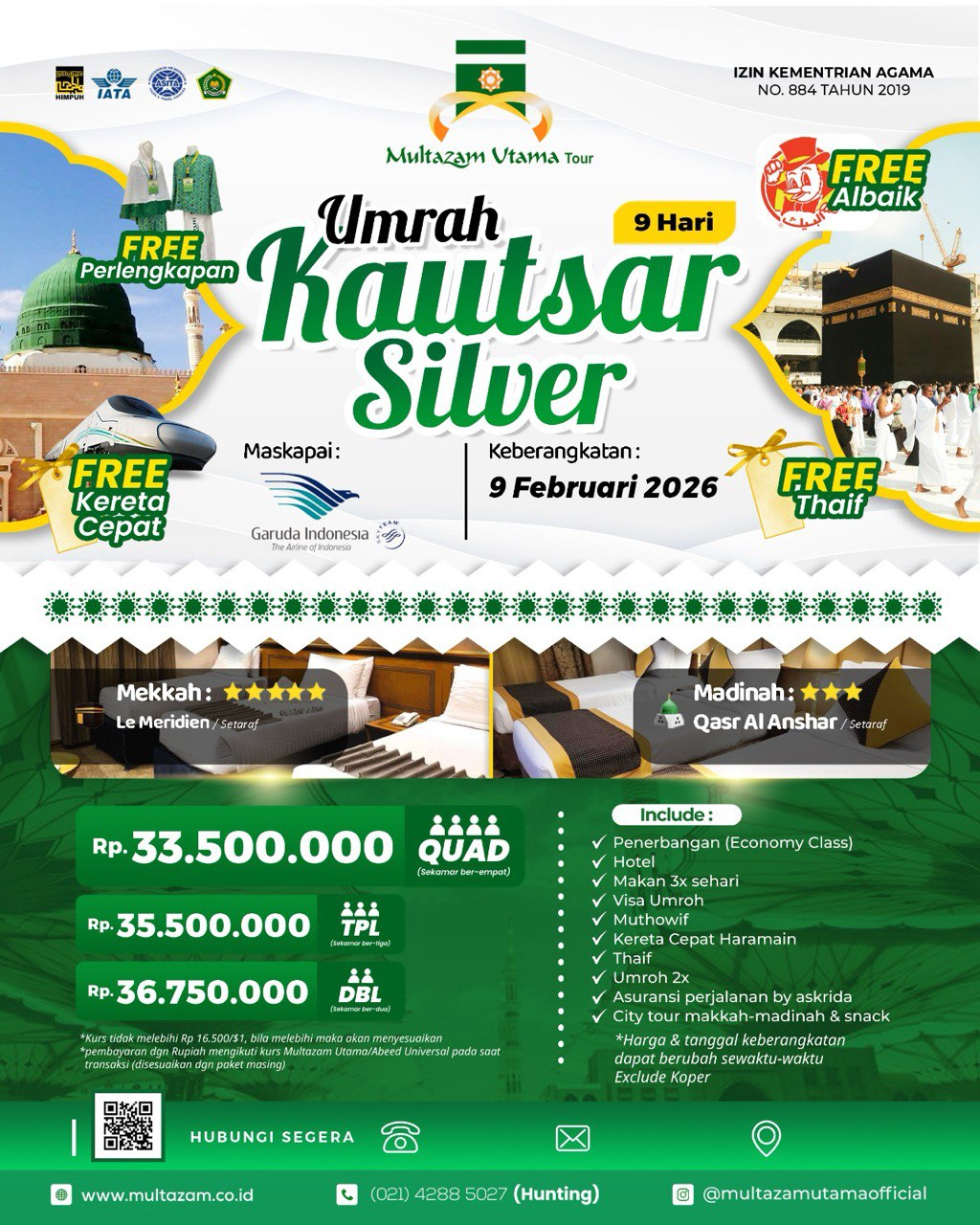 Temukan paket haji & umroh dengan fasilitas premium, bimbingan ustadz kompeten, dan akomodasi strategis. Perjalanan spiritual Anda akan lebih nyaman dan berkah.